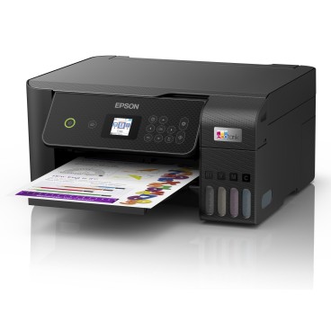 Epson EcoTank ET-2870. Technologie d'impression: Jet d'encre, Impression: Impression couleur, Résolution maximale: 5760 x 1440 DPI, Vitesse d'impression (couleur, qualité normale, A4/US Letter): 15 ppm. Copier: Copie couleur. Numérisation: Numérisation couleur, Résolution de numérisation optique: 1200 x 2400 DPI. Taille de papier de série A ISO maximum: A4. Wifi. Impression directe. Couleur du produit: Noir
