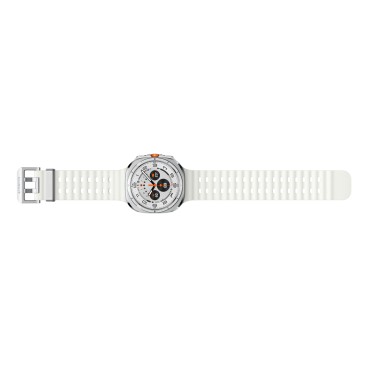 Samsung Galaxy Watch Ultra . Taille de l'écran: 3,81 cm (1.5"), Technologie d'affichage: AMOLED, Résolution de l'écran: 480 x 480 pixels, Écran tactile. Capacité de la RAM: 2000 Mo, Memoire flash: 32 Go. Wifi. GPS (satellite). Capacité de la batterie: 590 mAh. Poids: 60,5 g. Couleur du bracelet: Blanc, Taille du bracelet: Taille unique. Système d'exploitation installé: Wear OS