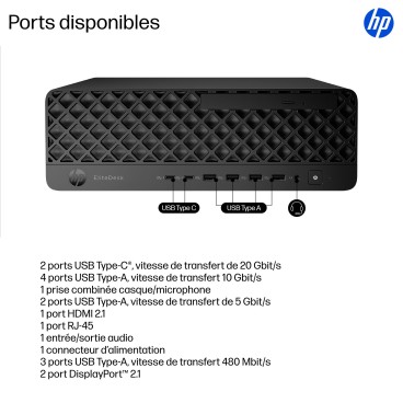 Dépassez les attentes les plus exigeantes avec le PC IA HP EliteDesk 8 G1i faible encombrement, le choix idéal pour les petits espaces de travail. Équipé du dernier processeur Intel Core™ Ultra[2] avec un NPU de 13 TOPS[3], ce PC IA puissant, évolutif et sécurisé répond aisément à vos besoins en matière de multitâche.