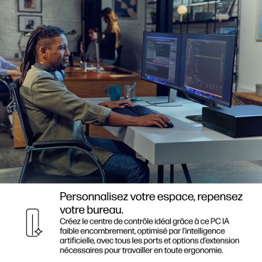 Dépassez les attentes les plus exigeantes avec le PC IA HP EliteDesk 8 G1i faible encombrement, le choix idéal pour les petits espaces de travail. Équipé du dernier processeur Intel Core™ Ultra[2] avec un NPU de 13 TOPS[3], ce PC IA puissant, évolutif et sécurisé répond aisément à vos besoins en matière de multitâche.