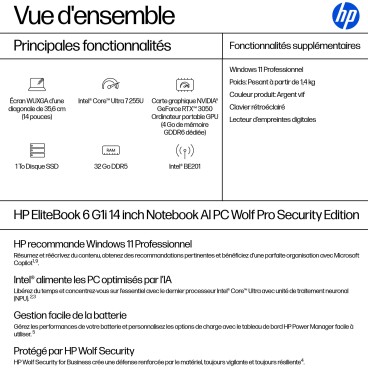 HP EliteBook 6 G1i AI PC Wolf Pro Security Edition, Intel Core Ultra 7, 35,6 cm (14"), 1920 x 1200 pixels, 32 Go, 1 To, Windows 11 Pro