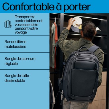 HP Sac à dos pour ordinateur portable Travel Plus 30L 17 pouces. Type d'étui: Sac à dos, Taille maximale de l’écran: 43,9 cm (17.3"). Poids: 1,08 kg. Coloration de surface: Monochromatique
